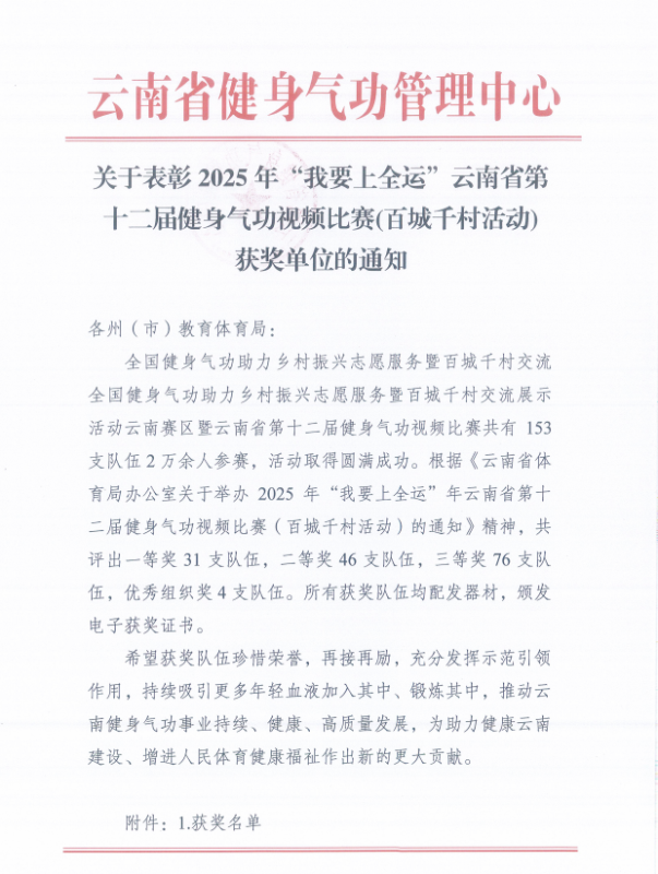 喜讯||BB贝博艾弗森官方网站荣获2025年“我要上全运”云南省健身气功视频比赛一等奖