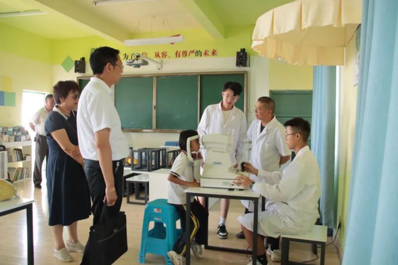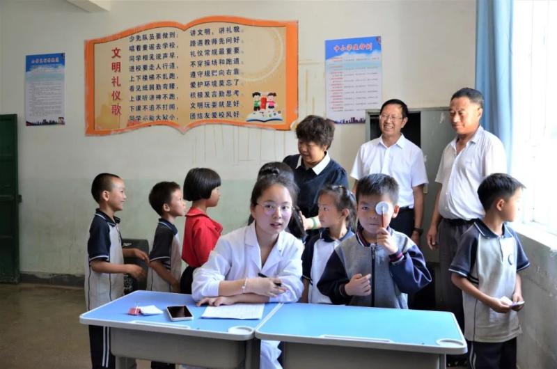 学校党员干部和医学技术系党支部师生还深入龙华村龙华小学,结合第28个全国“爱眼日”和眼视光技术专业的特色,开展“小我融入大我 青春献给祖国”党建带团建社会实践主题党日活动。进一步贯彻落实习近平总书记关于眼健康工作的重要指示批示精神,对小学生们进行“爱眼护眼”宣传教育、眼病筛查、视力检查和健康指导等义诊活动,共同守护孩子明眸“视”界,关注孩子们的眼健康现状,为孩子们送上“六一”国际儿童节的最真实的祝福。
