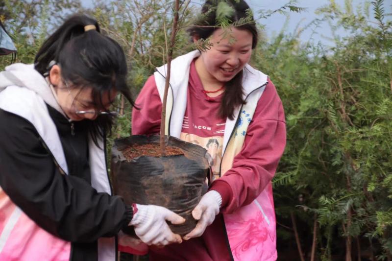 植树过程中,同学们热情高涨,干劲十足。大家团结协作、互帮互助,每个人的脸上都洋溢着劳动的喜悦和期待。