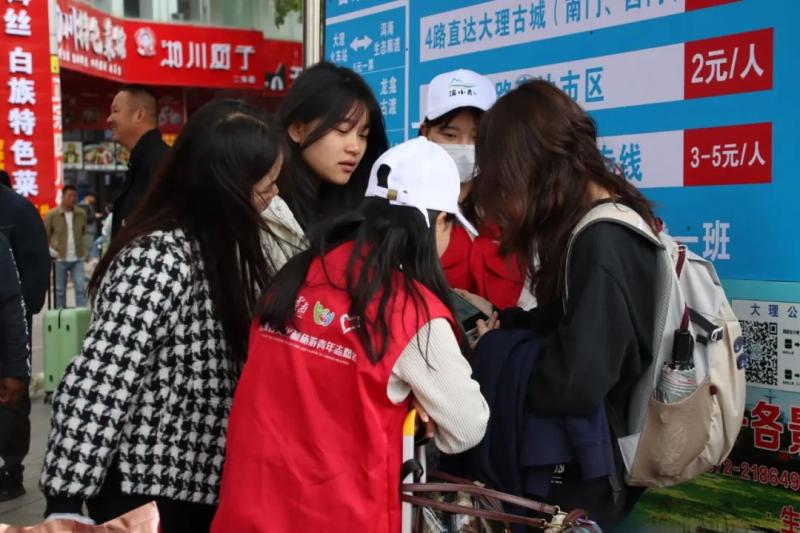 行走的“红色小马褂”每天活跃在大理站的进出站口,化身为热心的“东道主”,向游客介绍详尽的游玩攻略,为游客出行保驾护航,确保每一位来到大理的游客都能获得满意的旅游体验。