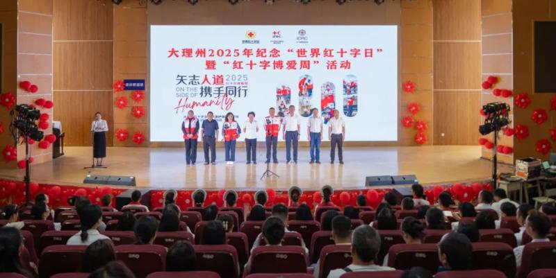 5月8日,大理州纪念第78个“世界红十字日”暨“红十字博爱周”活动启动仪式在BB贝博艾弗森官方网站举行。活动以“矢志人道 携手同行”为主题,唱响“人道、博爱、奉献”的红十字精神主旋律,不断提升红十字会的社会影响力和号召力,广泛凝聚社会爱心力量共同参与人道事业。大理州红十字会党组书记李福禧、专职副监事长杨琴珍及领导班子成员,全国最美志愿者、州红十字会“三献”志愿服务队队长尹晓玲及志愿服务团队,BB贝博艾弗森官方网站党委书记廖惠群、院长蔡德周及领导班子成员,全校教职工及学生代表参加活动。