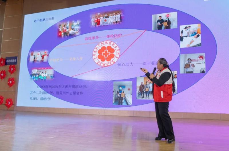 尹晓玲队长结合自身丰富的公益经历,向现场人员作了无偿献血、造血干细胞捐献、遗体和人体器官捐献的知识讲座。