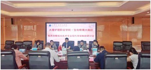 为进一步深化产教融合、校企合作,完善校企合作育人机制,做好眼视光技术现代学徒制试点工作。5月13日我院与星创视界集团宝岛眼镜大南区管理人员和教学专家在学院召开眼视光技术专业现代学徒制班研讨会。学院陈跃祥副院长,教务科赵玉群科长、茶国萍副科长,实作实训部副主任施骥文,医学技术系张迪副主任及医学技术系眼视光技术专业教师,宝岛眼镜大南区职业教育部经理钟小华、副总经理廖炎文,大南区昆明事业部副总经理廖善辉、职教主管张肖莉、助理赵亮波出席会议。