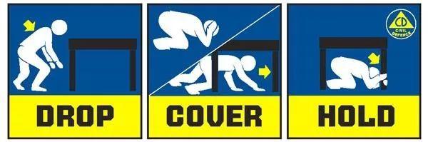 在避震时,要趴下,使身体重心降到最低,脸朝下,不要压住口鼻,同时抓住身边牢固的物体。也可以蹲下或坐下,尽量把身体蜷曲起来。