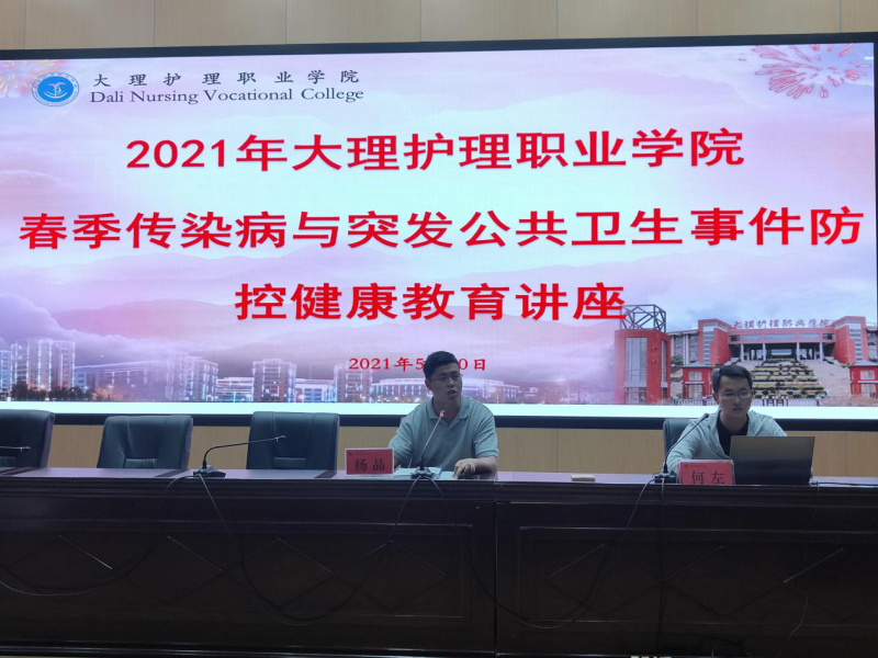 根据省教育厅《关于加强学校春季传染病与突发公共卫生事件防控工作的通知》要求,为进一步做好学院公共卫生安全管理防控工作,积极预防水痘、诺如病毒引起的感染性腹泻和肺结核等春季传染病流行在学校的发生,做好学院师生健康教育,切实保护师生的身心健康,5月20日下午,学院邀请大理州疾病预防控制中心急传信息科长何左到学院开展了“春季传染病与突发公共卫生事件防控健康教育讲座”。