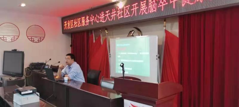 为提高广大人民群众脑卒中防控意识,倡导健康生活行为,实现脑卒中的早防、早诊、早治,按照大理州人民医院脑卒中筛查与干预项目安排,BB贝博艾弗森官方网站门诊部负责2021年脑卒中新筛与干预1000例的任务。门诊部积极与天井社区居委会联合,于2021年6月3日在天井社区居委会开展了第一期脑卒中健康教育知识讲座。由门诊部廖建东副主任主讲,天井社区慢性病患者及老年人共有43名参加了讲座。