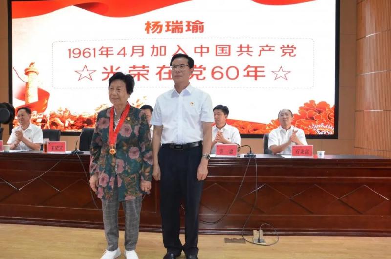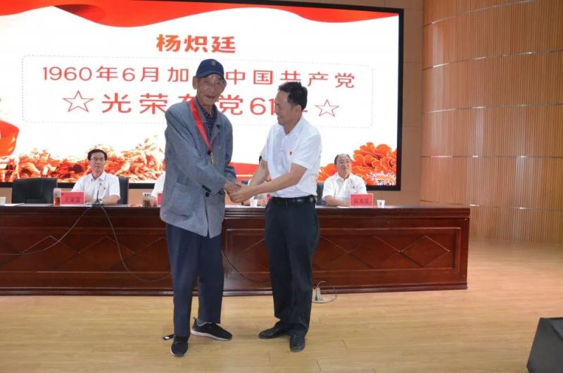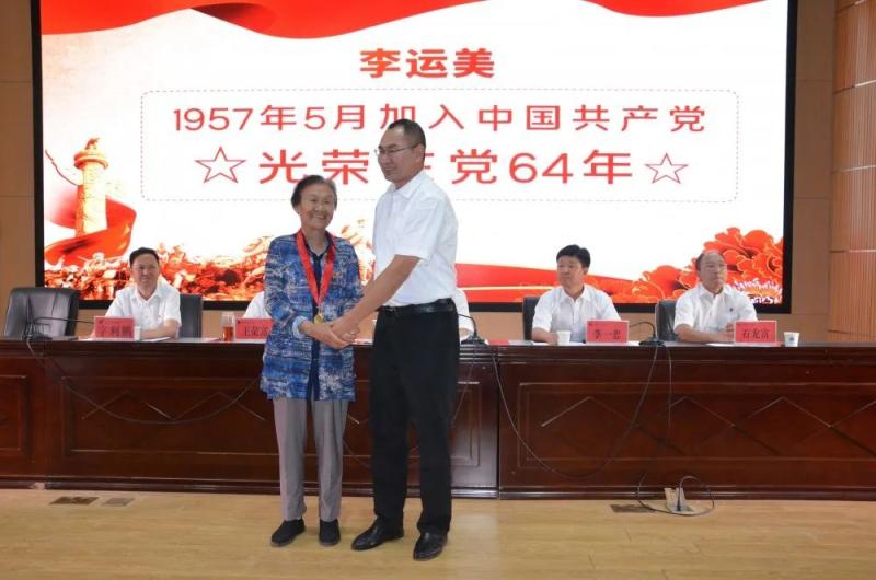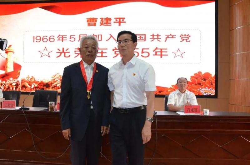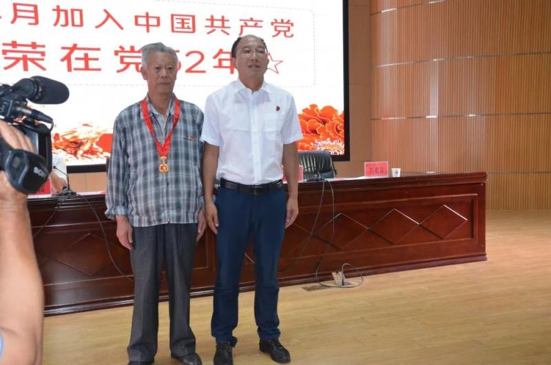 学院党委领导班子成员分别为曹建平等8位50年以上党龄、且一惯表现好的老党员颁发了“光荣在党50年”纪念章。