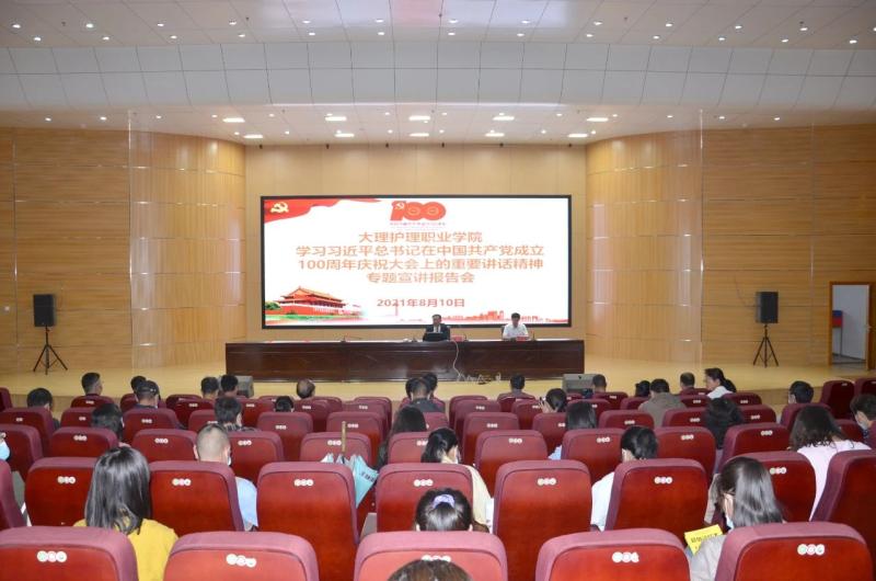 8月10日,根据大理州委党史学习教育领导小组部署安排,BB贝博艾弗森官方网站举行学习贯彻习近平总书记在庆祝中国共产党成立100周年大会上的重要讲话精神专题宣讲报告会。报告会由州委宣讲团成员,州委党校副教授、文史教研室主任杨宗老师以“新时代的政治宣言和行动指南”为主题进行专题宣讲。学院党委领导班子成员、党员、干部和教职工139人参加宣讲报告会,会议由学院党委书记王荣富主持。