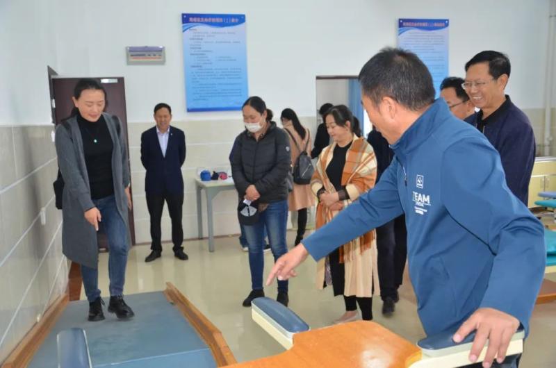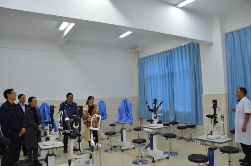 琪美卓嘎副秘书长一行首先深入学院医学技术系视觉验光实训室、眼镜定配技术实训室,康复技术系中药标本陈列室、中医诊断实训室、康复治疗实训室,护理系费森尤斯模拟血透中心实训室等实践教学场所进行实地考察和交流。