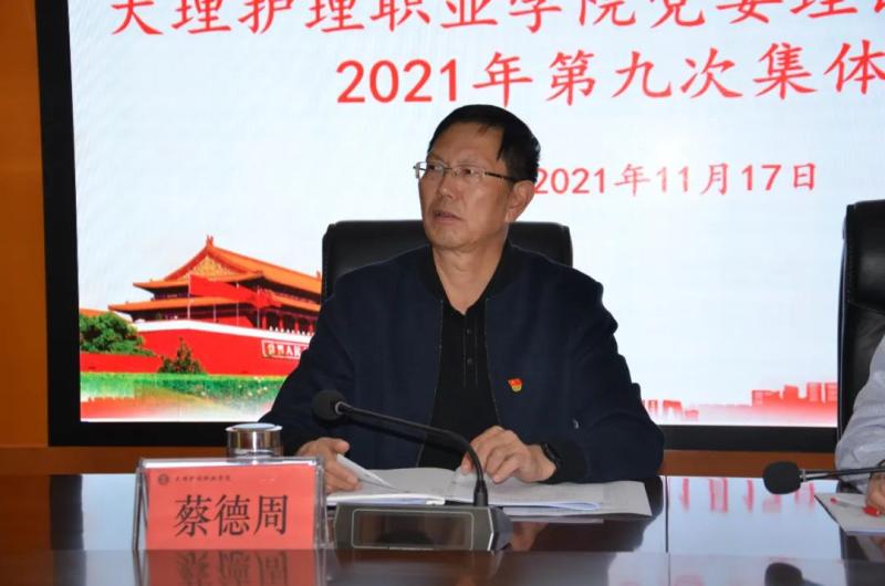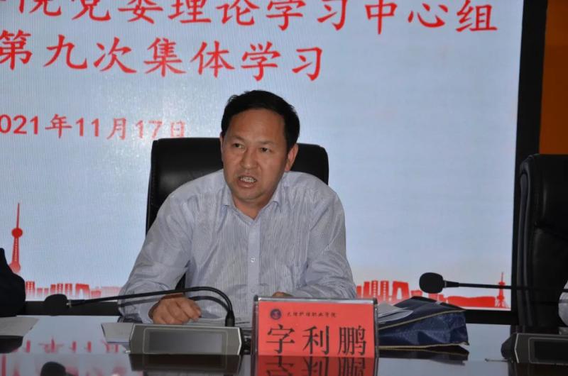 会议以进一步开展党史学习教育,深入学习贯彻党的十九届六中全会精神为主题,深入学习《中国共产党第十九届中央委员会第六次全体会议公报》、《云南省委组织部部长李刚在全省抓党建促乡村振兴视频会议上的讲话》、《中共大理州委组织部关于进一步严肃换届纪律加强换届风气监督工作的通知》、《中共云南省教育工委关于全力做好党的十九届六中全会重要保障期安全稳定工作的通知》等四个文件精神和要求。学院党委副书记、院长蔡德周,党委专职副书记字利鹏,党委委员、副院长李一忠、陈跃祥分别领学相关内容。