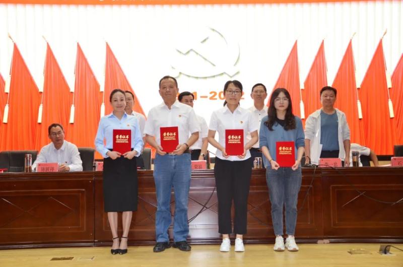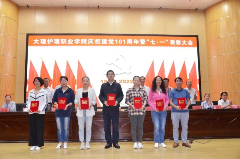 党委副书记、院长蔡德周宣读了《中共BB贝博艾弗森官方网站委员会关于表彰先进党支部、优秀共产党员和优秀党务工作者的决定》,校党委领导班子成员为受表彰的2个先进党组织、18名优秀共产党员和9名优秀党务工作者颁发了奖牌和证书。