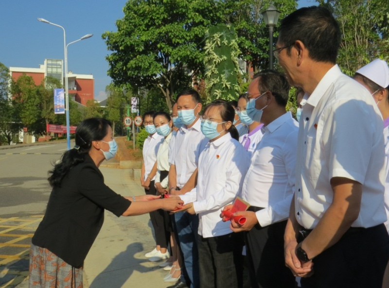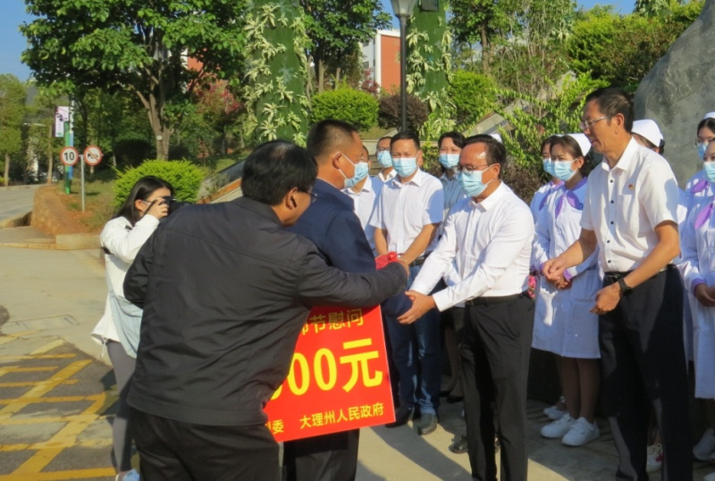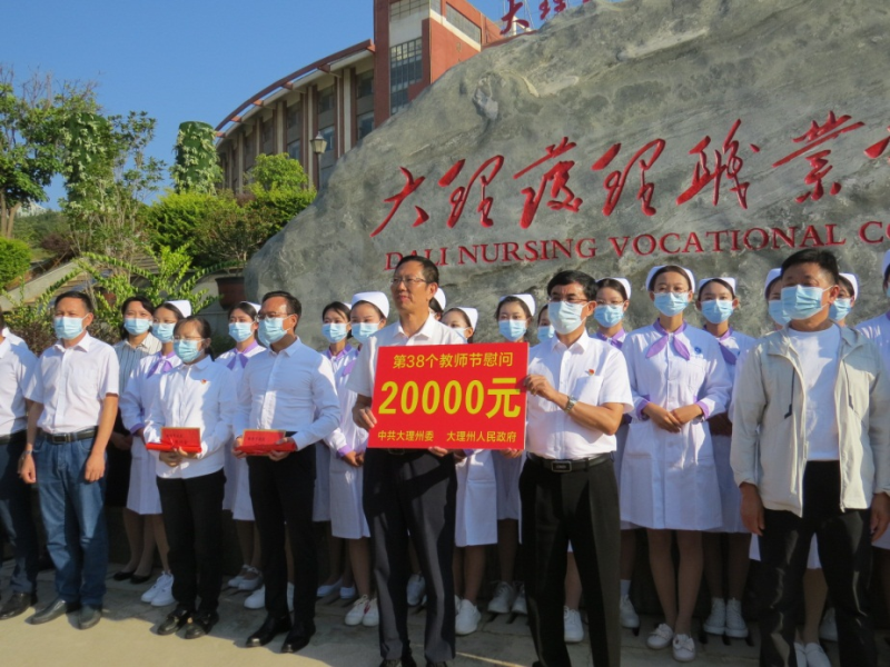 9月8日,在第38个教师节来临之际,大理州委副书记李琰、州人大主任张剑萍、州政协主席朱建斌,州教育体育局副局长张宝明一行到BB贝博艾弗森官方网站开展教师节慰问,向辛勤工作在教育教学一线的全校教师和教育工作者致以节日的祝福和诚挚的问候,为学校教职工、一线教师代表和退休教职工代表送上慰问金,希望全体教师进一步振奋精神、凝聚力量,以昂扬奋进的姿态迎接党的二十大胜利召开。