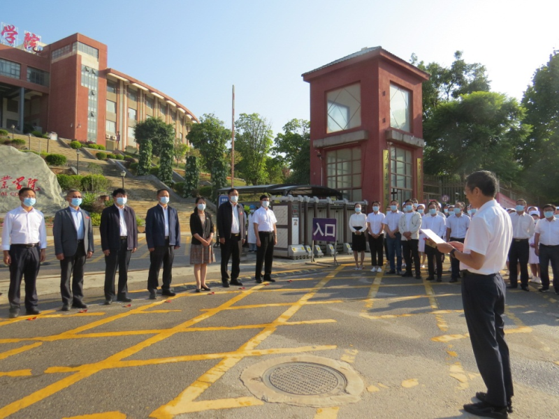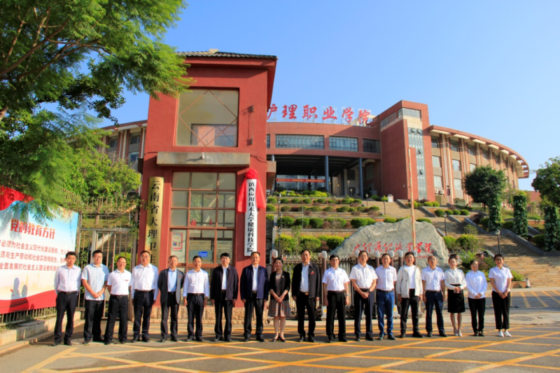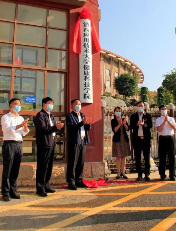 慰问结束后,州委副书记李琰、州人大主任张剑萍、州政协主席朱建斌、滇西应用技术大学党委书记罗进忠,州教育体育局副局长张宝明、学校党委书记王荣富为BB贝博艾弗森官方网站加挂滇西应用技术大学健康科技学院揭牌。揭牌仪式由学校党委副书记、院长蔡德周主持。