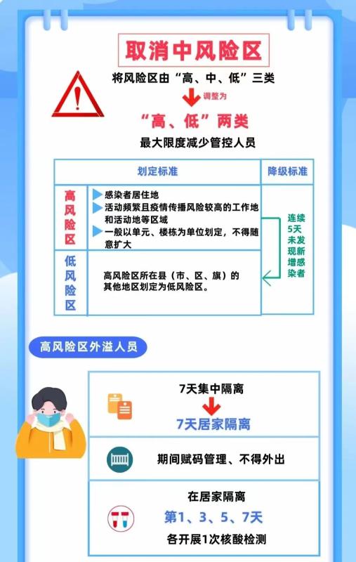 将风险区由“高、中、低”三类调整为“高、低”两类。