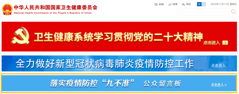 国家卫生健康委官网已开通了疫情防控“九不准”公众留言板。市民如发现违反“九不准”的问题线索,可以登录http://www.nhc.gov.cn/ ,在留言板处反馈。