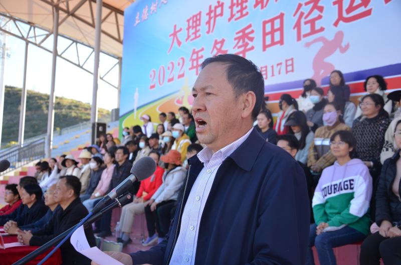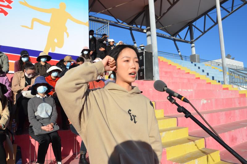 17日8:30,在奏唱中华人民共和国国歌雄壮的歌声中运动会拉开了序幕。学校党委专职副书记字利鹏宣布BB贝博艾弗森官方网站2022年冬季田径运动会开幕。学校党委副书记、院长蔡德周致辞。学校教师普晋清、中医养生保健2101班学生李英分别代表裁判员和运动员宣誓。副院长郭向周主持开幕式。