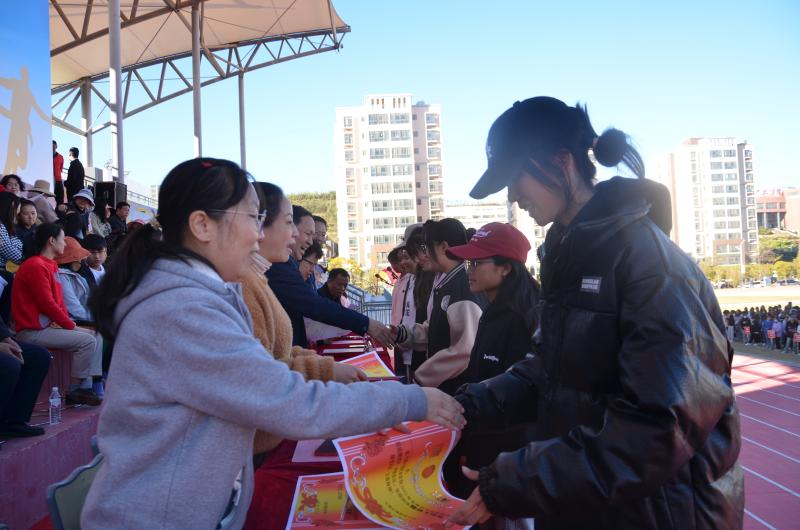 18日16:30,蔡德周院长在闭幕式致辞中指出,本次运动会比赛过程井然有序,会场气氛紧张热烈,各项竞赛捷报频传,赛风赛纪优良。广大师生员工热情饱满、团结奋进,全体运动员顽强拼搏、奋勇争先,全体裁判员严守规程、公正评判,各班级密切配合、精诚协作,实现了竞赛成绩和精神文明的双丰收,切实增强了师生员工的凝聚力、向心力,是全校师生员工良好精神风貌的一次全面展示。蔡德周院长希望同学们以本次运动会为新的起点,以党的二十大精神为引领,在迈向未来的新征途中,在这块洒下辛勤汗水的热土上,以崭新的姿态,满腔的热血,顽强的意志,团结的力量,拼搏的精神,坚定的信念,去弹奏生命涌动的青春乐章,展示激情燃烧的青春风采,描绘人生理想的壮丽画卷,书写金色年华的锦绣前程,绽放莘莘学子的精彩人生,共创BB贝博艾弗森官方网站更加多彩灿烂的美好明天!