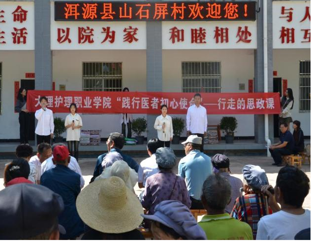 9月23日,学校组织师生到洱源县炼铁乡山石屏村麻风历史博物馆开展“践行医者初心使命”行走的思政课活动,学习李桂科医生济世救人的医者情怀、扎根基层为患者无私奉献、务实担当的高尚精神。BB贝博艾弗森官方网站将山石屏村麻风历史博物馆设立为马克思主义学院思政课校外实践基地,蔡德周院长和李桂科医生共同为基地揭牌。师生通过现场演讲,表演“白衣为甲、逆行出征”舞蹈节目,广泛深入持续开展学习李桂科医生的榜样精神,打造学校思政课程和课程思政的“金课”。