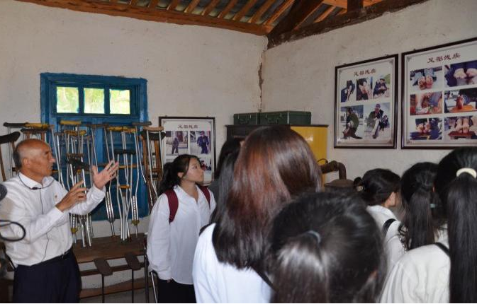 师生在李桂科医生的引导下,参观了麻风历史博物馆。一件件珍贵的历史文物和饱经沧桑的真实物件,沉淀着一段段令人难忘的深刻历史记忆,记录了在医疗人员严重不足、医疗条件艰苦落后的情况下,李桂科医生带领大家舍生忘死抗击麻风病的荡气回肠的生动故事,展示了“麻风村”变成“幸福村”的历史变迁。