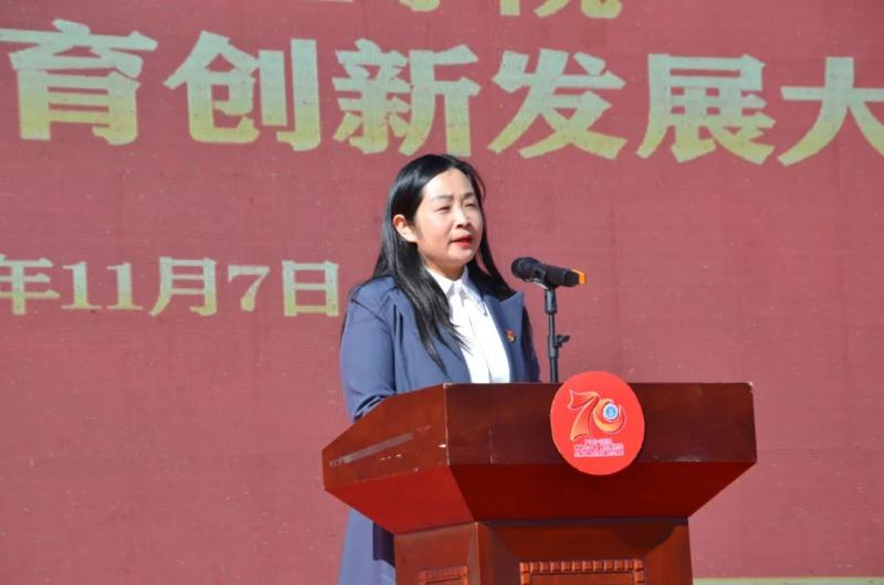 11月7日,BB贝博艾弗森官方网站召开建校70周年教育创新发展大会。会上,中共大理州委常委、州委副书记肖创勇讲话,大理州人民政府副州长杨泽亮致辞,BB贝博艾弗森官方网站党委书记廖惠群主持会议,党委副书记、院长蔡德周作主旨演讲,校友代表大理州卫健委副主任李宏军、教师代表茶国萍和学生代表李静分别发言。