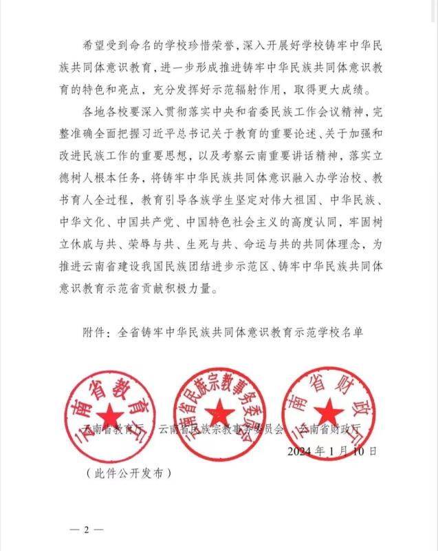 1月10日,大理护职业学院经云南省教育厅、云南省民族宗教事务委员会、云南省财政厅联合发文,命名为“全省铸牢中华民族共同体意识教育示范校”。