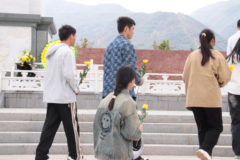参加活动的师生整齐列队,肃立在纪念碑前,向烈士们致以最崇高的敬意。国旗护卫队的学生敬献花圈,表达师生对烈士们的无限敬仰和深切怀念。