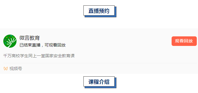 大家知道吗?今年4月15日,将迎来第九个全民国家安全教育日,教育部指导推出面向全国高校学生的《千万高校学生同上一堂国家安全教育课》。关注微言教育微信,4月14日15点,在微言教育视频号、抖音号、快手号、微博观看直播,一起上好这堂安全课——