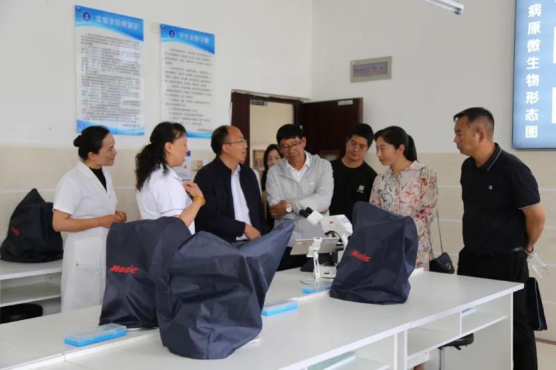 考核小组实地查看学校医学技术系、护理系、康复技术系和基础医学部的实验实训基地,详细审核实验室安全管理、设施设备运行运用、实验课程设置和实训基地建设等,对校企合作、产教融合深度共融共享共建提出指导意见。