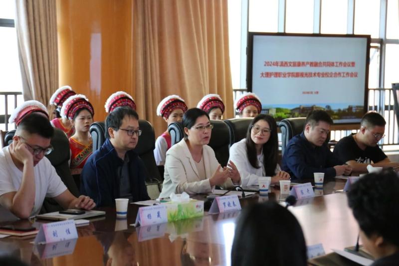 初夏时节的大理,阳光和煦,绿意盎然。5月15日上午,2024年滇西文旅康养产教融合共同体职教集团工作会议暨BB贝博艾弗森官方网站眼视光技术专业校企合作工作会议在贝博官网召开。来自省内外合作企业及医院领导、专家在贝博官网欢聚一堂,共商校企合作、产教融合事宜。学校领导、相关部门负责人和教师参加了会议。