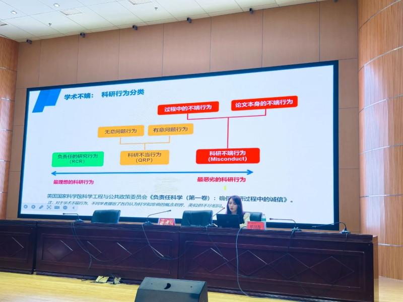 中国知网罗闰扬老师以“营造浓厚科研氛围,增强学术规范意识”为主题,分别从知网介绍及使用说明、大数据支撑科研选题、高效检索与文献读写、科研诚信与学术规范和投稿选刊与网络安全等五方面进行讲授。罗老师重点介绍了学术不端类型,包括:剽窃、抄袭、侵占他人学术成果;篡改他人研究成果;伪造科研数据、资料、文献、注释,捏造事实、编造虚假研究成果;未参加研究而在成果中署名,未经许可不当使用他人署名,虚构合作者或未参加研究而署名;在申报课题、申请学位等过程中提供虚假学术信息;买卖论文、由他人代写或者为他人代写论文;其他根据相关机构规定属于学术不端的行为等内容。分析了造成学术不端的主要原因。罗老师毫无保留地将如何撰写学术论文、如何投稿、如何提升科研软实力等经验与方法倾囊相授。