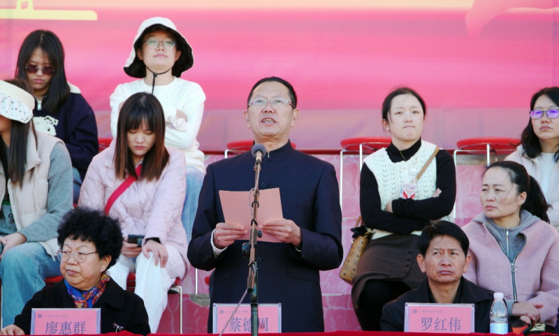 校党委书记廖惠群宣布2024年冬季田径运动会暨趣味运动会闭幕,党委副书记、校长蔡德周发表讲话,校党委专职副书记字利鹏宣读“迎新杯”篮球比赛、省游泳锦标赛、全国健身气功---八段锦比赛和田径运动会暨趣味运动会团体获奖名单,党委委员、副校长郭向周主持闭幕式。全校师生参加闭幕式。