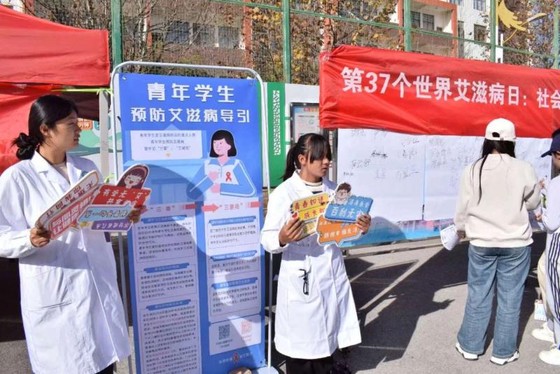 2024年12月1日是第37个“世界艾滋病日”。为了提升贝博官网师生的健康意识和艾滋病防治知识,11月8日起,护理系、教务科、学生科、基础医学部、妇联、校团委、校红十字会等多部门联合开展为期一个多月的“2024年世界艾滋病日宣传教育系列活动”。本次活动共2000余名师生参与。活动由护理系团委、青春健康同伴社承办。