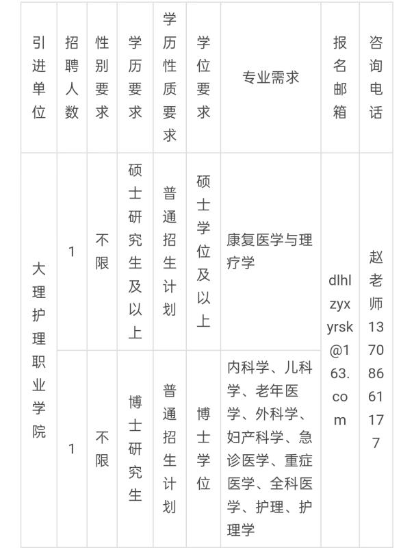 (三)本次人才引进有关事宜将在大理州人民政府门户网站(www.dali.gov.cn)或“大理先锋”微信公众号登载。报考人员因查看其他渠道的错误信息造成的报名失误,由报考人员自行负责。