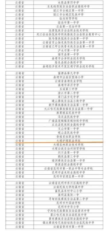 其中,云南105所学校入选