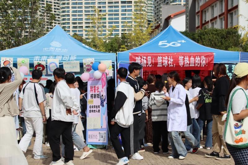 大一新生带着对校园生活的好奇与期待,穿梭在各个展位之间,认真聆听社团介绍、翻阅招新手册,不时与社团成员交流;大二学生则更有针对性地寻找感兴趣的社团,希望在新学年拓展兴趣、提升能力。相较于往年,本次招新活动前期通过校园公众号、班级群、线下海报等多渠道广泛宣传,各社团提前打磨展示内容,互动形式更丰富、参与感更强,有效点燃了同学们的报名热情。学校团委、学生科等相关部门工作人员全程在场,及时协调解决问题,为活动顺利开展提供坚实支持。