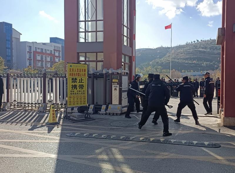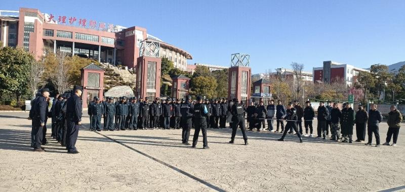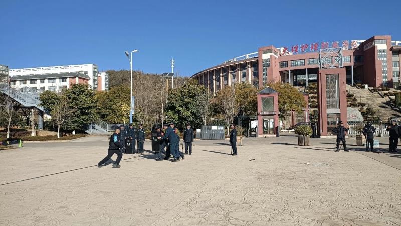 1月6日上午,大理市巡特警大队、海东新区派出所组织辖区学校在BB贝博艾弗森官方网站开展校园反恐防暴培训暨演练活动。滇西应用技术大学、大理技师学院、下关三中、北附育英实验学校等11所学校的100余名保安人员参加培训和演练。