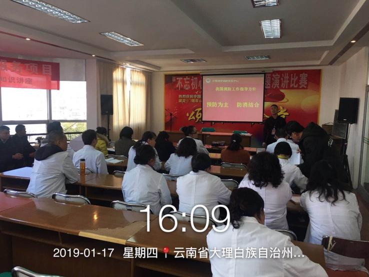 为进一步加强安全生产工作,增强职工消防安全意识,提高消防应急处置能力,根据《大理州卫计委 “安全生产月”活动实施方案》的安排部署, 1月17日,BB贝博艾弗森官方网站门诊部开展了一场消防安全知识讲座,讲座邀请了云南省消安消防普及中心的专家为我们讲授。