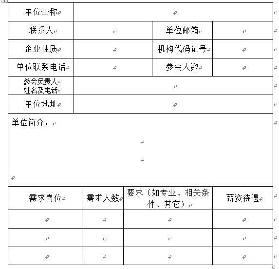 我单位_________________________参加贵院2021年4月26日毕业生校园招聘会。拟招聘贵院 专业,涉及岗位 ,共提供岗位数______。参会___人,负责人姓名 ,身份证号 ,联系方式 。其他参会人员姓名__________________________________