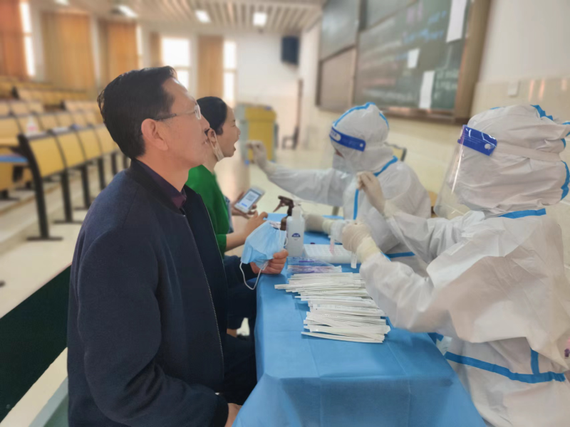 学校领导带头参加核酸检测,并详细察看了整个核酸检测进程。截至9月5日,我院已完成全校教职工、全体在校学生、外聘教师、安保人员、食堂后勤社会化工作人员全覆盖的秋季入学核酸检测工作,检测结果均为阴性。