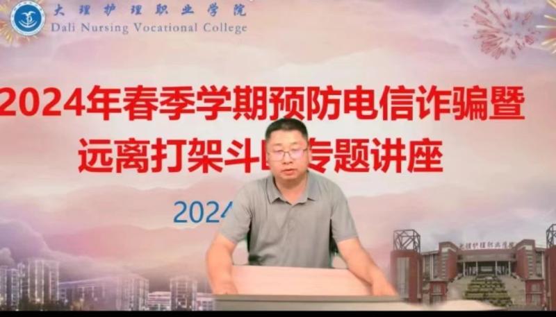 4月6日,学校邀请大理市公安局海东新区派出所副所长汤绍怡警官,为全校师生开展了“预防电信诈骗暨远离打架斗殴”的专题讲座,进一步抓牢校园安全和学生法治教育,扎实推进平安校园和法治校园建设,全体在校班级近3600名学生通过各班教室多媒体认真聆听了此次讲座,讲座由学生科负责人陈勇老师主持。