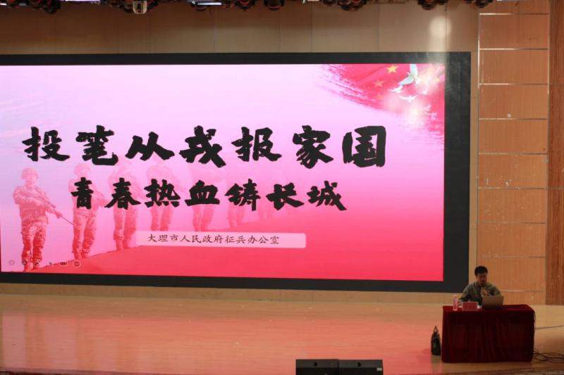 宣讲会邀请了大理市人民武装部军事科普万达参谋,学校退伍军人张敏华老师、杨洪多同学、刘万洪同学、朱健云同学等嘉宾出席。普万达参谋以“投笔从戎报家国,青春热血铸长城”为题,从“为什么要当兵、当兵的优待政策、征集政策、报名方式、咨询方式”等方面进行了宣讲,深入浅出的讲解让同学们对征兵政策有了全面了解。在互动环节,同学们积极提问,普万达参谋耐心解答,现场气氛热烈。退伍军人张敏华老师、杨洪多同学也分享了他们的军旅经历,用真实故事展现军旅生活的魅力与意义,让同学们对军营生活有了更直观的认识。