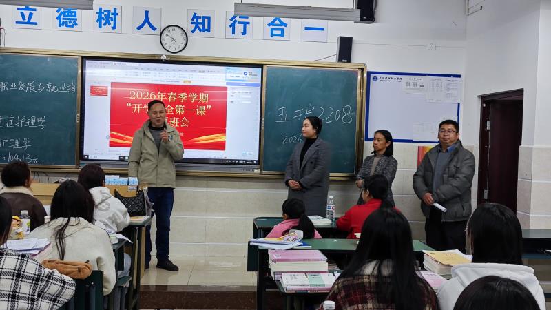 3月1日,贝博官网统一组织开展了2026年春季学期“开学安全第一课”主题班会,帮助学生快速适应新学期,筑牢校园安全防线,传递学校人文关怀,引导学生树立正确的成长观念。学校党委专职副书记字利鹏同志带领学校学生科工作人员、各系党支部书记、学生管理科长及全体班主任、辅导员深入班级与全体学生齐聚一堂,开启2026年春季新学期的新篇章。