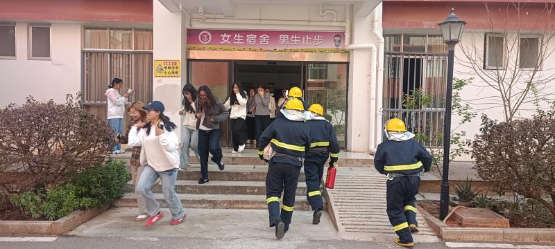 演练首先模拟校园内突然响起了地震警报声,正在上课的师生们迅速按照预定方案,进行紧急避险。待地震警报解除后,学生在老师的指挥下,弯腰低姿,沿着指定的疏散路线快速、有序地撤离到安全地带。整个疏散过程紧张有序,用时2分钟,全体师生安全到达集合地点。随后,模拟学生宿舍发生火灾,全体学生听到消防广播的疏散信号后,按照应急疏散预案要求,冷静、快速、有序从最近的疏散通道撤离至安全集结。与此同时,4名消防队员火速赶赴现场实施灭火。