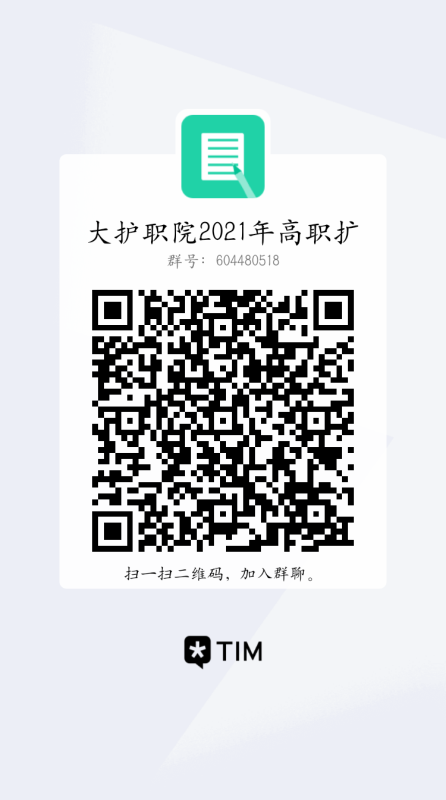 各位参加BB贝博艾弗森官方网站2021年高职扩招的考生,请用QQ扫描下方二维码加入“大护职院20201年高职扩招考试群”以便以及接收考试的通知。加群后请将群名片修改为本人姓名。谢谢!