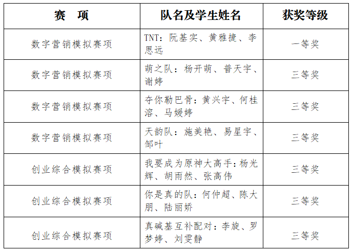 6月23日,第十一届“学创杯”全国大学生创业综合模拟大赛云南省选拔赛在云南国土资源职业学院举行,贝博官网共收获7个省级奖项,其中,在数字营销模拟赛项中获一等奖1项、三等奖3项,在创业综合模拟赛项中获三等奖3项。这是学校截至目前在此类竞技大赛中首次取得一等奖的好成绩。